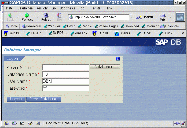 Wenn Sie das Webinterface der SAPDB sehen wollen, fügen Sie in der Datei /etc/ld.so.conf die Zeile