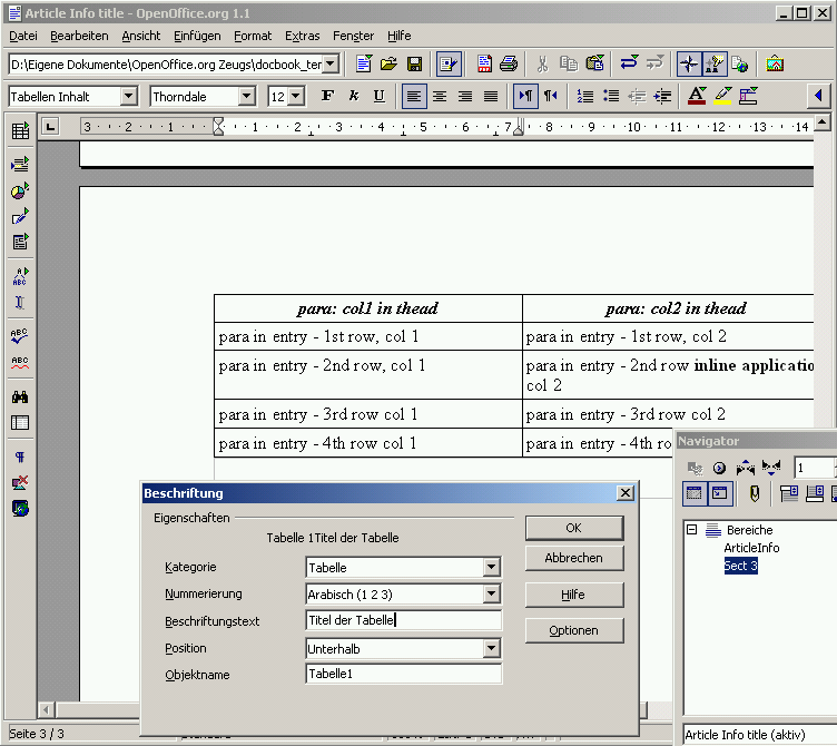 In OpenOffice.org 1.1 Beta 2 Deutsch sind die DocBook-Filter schon aktiviert. Wenn Sie OpenOffice.org 1.1 Beta 1 benutzen, müssen Sie die Filter manuell installieren. |