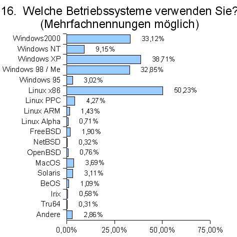 mit über 50%, hoher Anteil der Anwender benutzt Linux.